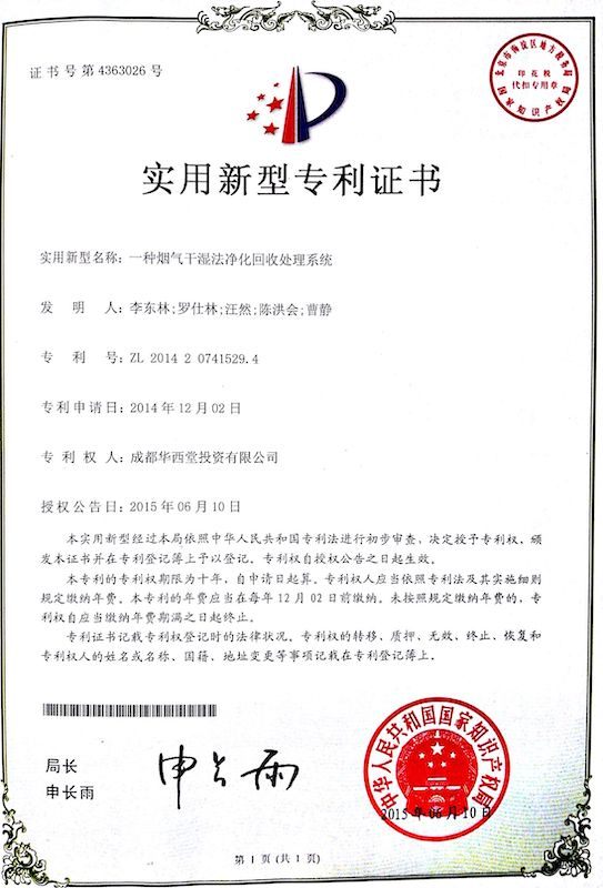 首页 专利资质 其他专利 一种烟气干湿法净化回收处理系统