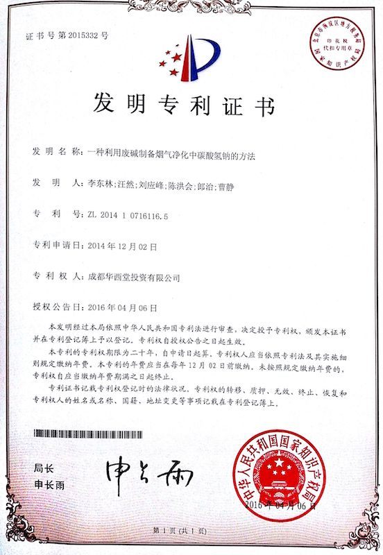 首页 专利资质 其他专利 一种由废碱制备烟气净化中碳酸氢钠的工业化制备方法